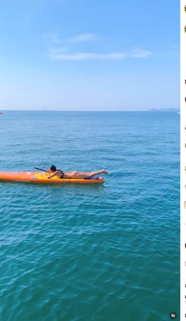 とつづり、水着姿でウオーターアクティビティのSUPなどを楽しむ動画をアップ。Tフロント&Tバックの限界突破した水着を着用しており、異次元のスタイルの良さが際立つ投稿となっている。