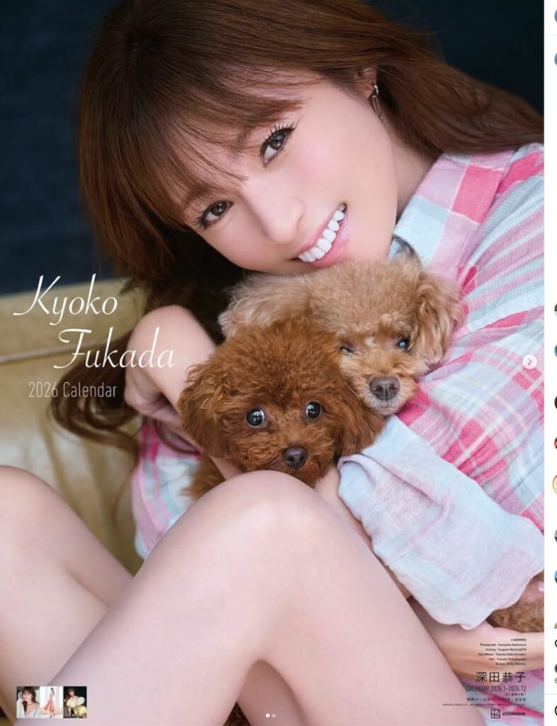 「皆様いかがお過ごしでしょうか⁉️段々寒くなってきましたね🧵今年も有難いことにカレンダーの撮影をしました‼️いつもは、テーマを予め決めるのですが今回は陽の光を浴びるスタジオで自然体な姿を撮って頂きました💕まだ暑い時期でしたが、海の香りを感じながらの心地よい時間でした🩷表紙には愛犬のぱぴぷぺぽっけとまだ赤ちゃんのニャンちゅうも一緒です😆🎁毎年お願いしていますが、来年も皆様のお家にお邪魔出来たら嬉しいです🥹🙏💕#季節の変わり目お身体大切にしてくださいね#衣替えは終わりましたか?#私はまだ、、、」